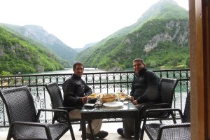 משמאל, הצד הבוסני נפתח לגבעות, מימין הצד הסרבי תוחם את האגם בחומת הרים – פארק טארה. זה לא מה שיעצור את היוזמה של הסרבים, והם בונים כמעט לכל אורך הנהר בקתות צפות, בגדלים שונים. הם "יושבות" על חביות בדרך כלל וקשורות לגדה. סאביץ' סידר לנו להתארח בבקתה כזאת – חדשה מהניילונים. רדיסאב נופף לנו לשלום ועזר לנו להתמקם והראה לנו את הבקתה. סלון קטן, מטבחון ומרפסת גדולה. בקומה השניה חלל שינה ל-5 נפשות. הנוף אל האגם וההרים מדהים.